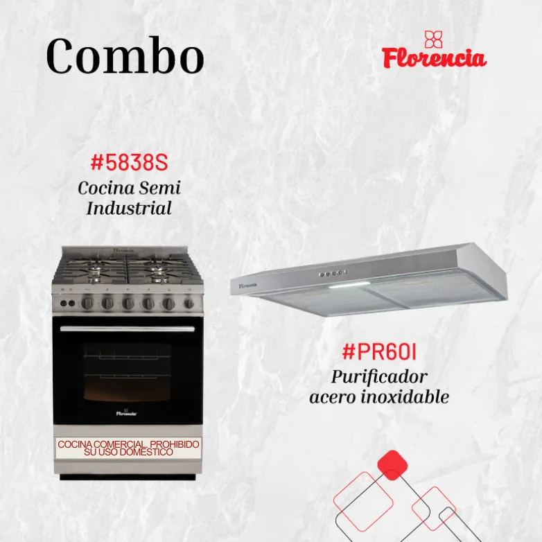 Combo Cocina Semi Industrial Florencia 5838S + Purificador PR60I