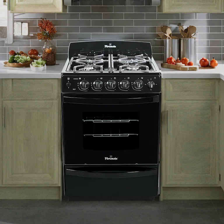 Cocina a gas Florencia 5547 con rejillas de hierro fundido está pensada para quienes buscan un equipo confiable, resistente y con excelente rendimiento. Su terminación en color negro y detalles sobrios la convierten en una opción elegante para cocinas modernas o tradicionales. Con medidas de 85 cm de alto, 56 cm de ancho y 60 cm de profundidad, se adapta fácilmente a espacios estándar.
