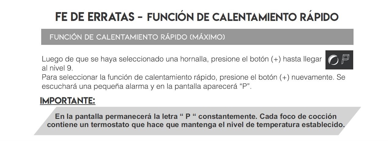- 10 niveles de cocción (incluye función de calentamiento rápido)